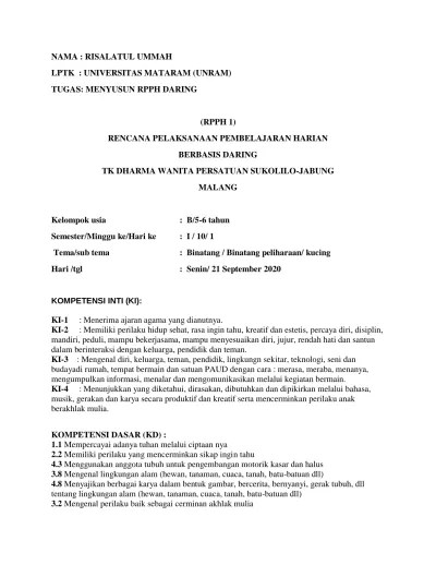 Rencana pelaksanaan pembelajaran harian dengan tema binatang sub tema binatang peliharaan dengan kegiatan membuat kolase binatang kelinci. Binatang air ciptaan tuhan, perilaku hidup sehat,. Download lagu rpph | binatang sapi | subtema binatang peliharaan | tema binatang | materi tk. Rkh untuk ra tema binatang. Sub tema binatang peliharaan ayam kucing kambing sapi kelinci nam .